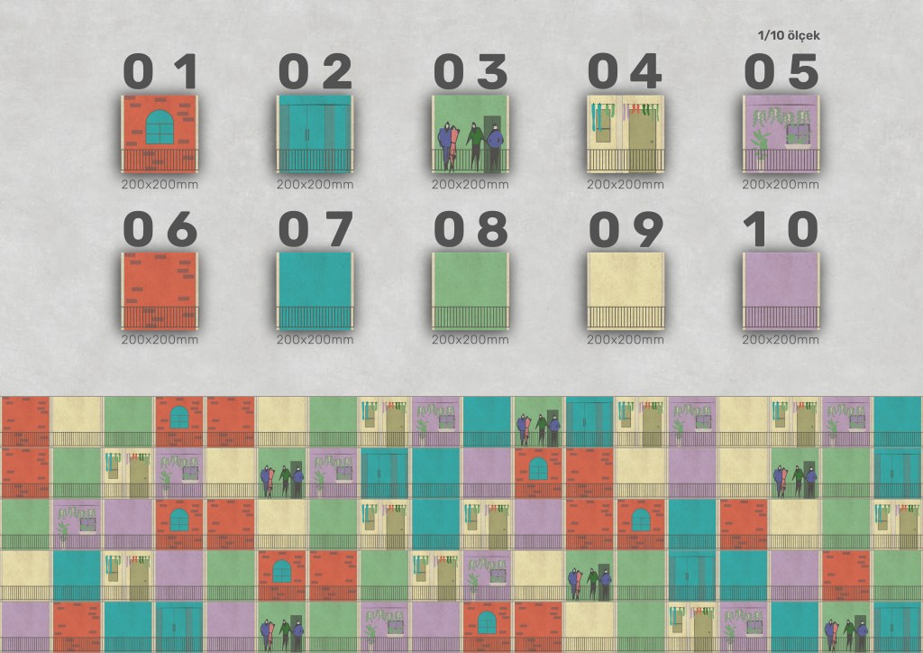 Human life is made up of routines, but also includes events and situations outside the routine. This design aims to tell different life stories through the same buildings. It repeatedly brings to light the details people might not notice at first glance. Balcony railings and expressions reflected on the facade walls represent the routine, while different colors and themes break that routine.