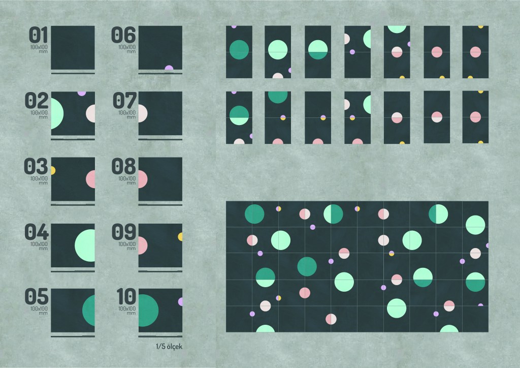 Ceramics create patterns within themselves—patterns that result in uniformity but consist of individually unique pieces. In this project, the pieces are designed to stand out when considered as part of a whole. The tiles, which can be arranged within routines, are designed to be assembled only in specific regions based on the user’s choice. The design is dedicated to the idea that each unit can exist as itself within the whole.
